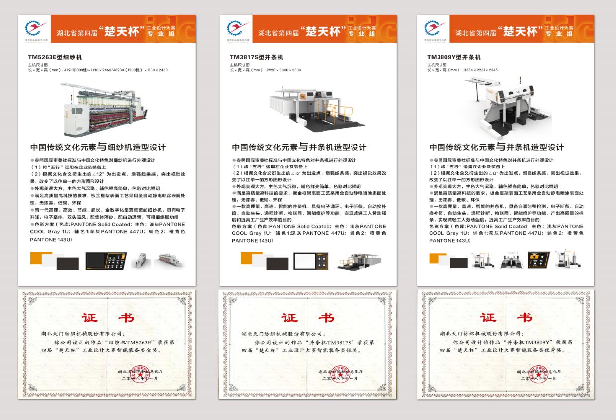 天門紡機(jī)獲獎的三個(gè)產(chǎn)品申報(bào)平面設(shè)計(jì)和獲獎證書