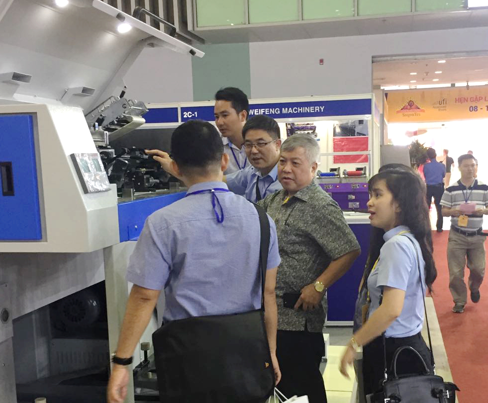 在展會(huì)上,位于A2-2D-1湖北天門(mén)紡織機(jī)械股份有限公司展位人頭攢動(dòng)、客戶云集,成為整個(gè)展會(huì)的一大亮點(diǎn),VINATEX NAM DINH、VICOTEX、 成功紡織、臺(tái)灣興業(yè)、臺(tái)南紡織、東光公司等當(dāng)?shù)仄髽I(yè)負(fù)責(zé)人親赴現(xiàn)場(chǎng)參觀,華孚時(shí)尚董事長(zhǎng)孫偉挺等嘉賓在天門(mén)紡機(jī)展位認(rèn)真觀看設(shè)備演示,詳細(xì)了解了產(chǎn)品的新性能和新工藝,對(duì)天門(mén)紡機(jī)并條機(jī)與細(xì)紗機(jī)兩款展機(jī)給與高度評(píng)價(jià)。