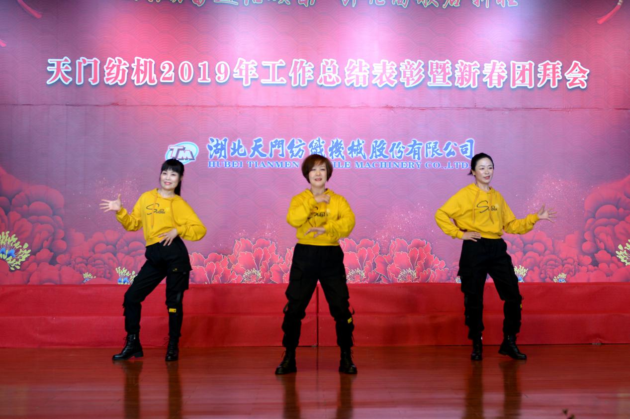 2020年1月21日下午,湖北天門紡織機械股份有限公司綜合樓多功能廳張燈結彩、暖流融融,一場主題為“砥礪奮進結碩果、引吭高歌啟新程”的年度總結表彰暨新春團拜會在這里舉行,400多名員工身著公司新佩發的西服套裝,精神奕奕地走進會場。13:00整,三位主持人靚妝登場,宣布2019年度總結表彰暨新春團拜會開始。