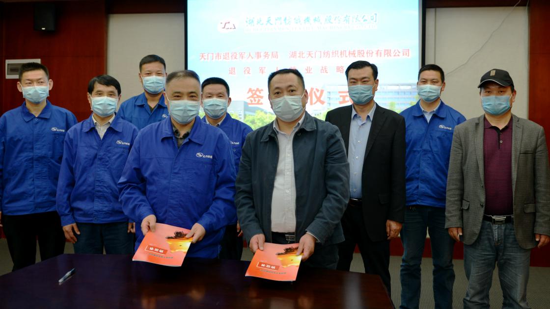 天門市退役軍人事務局與天門紡機舉行退役軍人 就業戰略合作簽約儀式