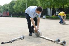 公司組織的消防器材實操演練現場