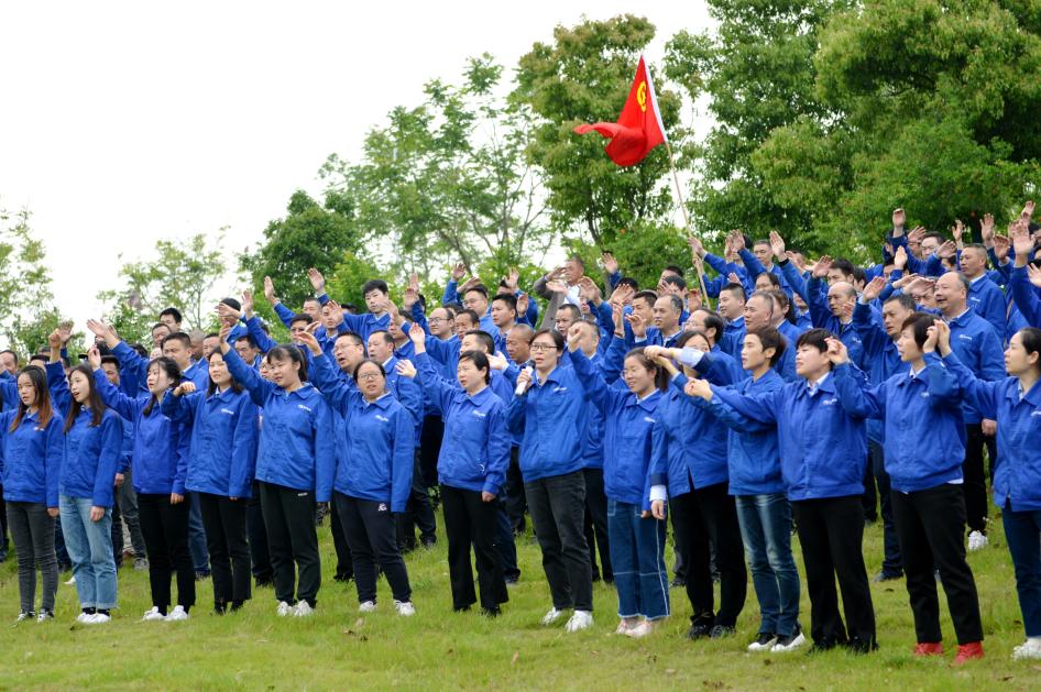 全公司大合唱“我和我的祖國”的“快閃行動”,把踏青之行推向高潮。340多名員工排成矩形從山坡上一瀉而下,嘹亮的歌聲傳遍四方,“我最親愛的祖國,你是大海永不干涸,永遠給我碧浪清波。”340多條手臂揮舞了起來,合著節拍,形成一股強大的力量。
