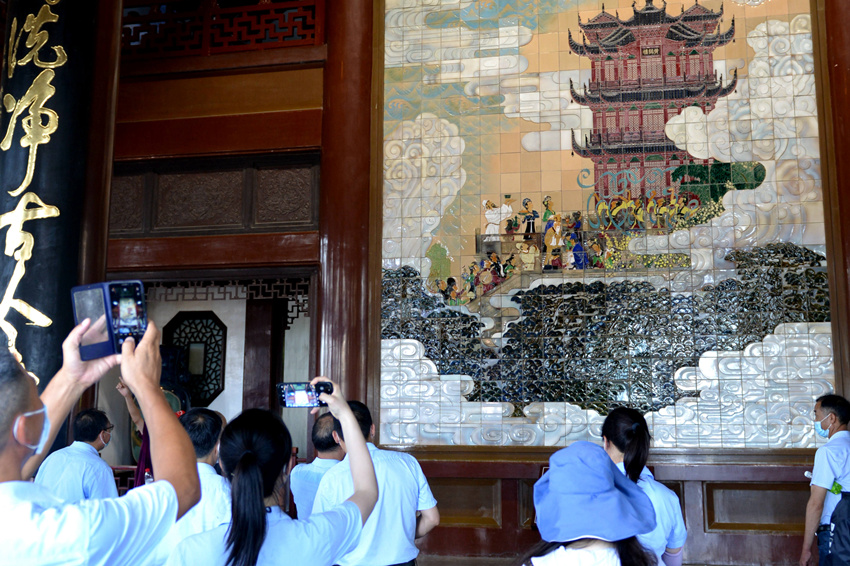 我們興致勃勃登臨黃鶴樓。黃鶴樓始建于三國時期,距今已有1700多年的歷史,是中國三大名樓之一。現存的黃鶴樓建成于1985年,坐落在長江南岸武昌蛇山峰嶺之上。作為古今名樓,黃鶴樓承載了悠久燦爛的中華文化,唐代詩人崔顥的詩句“黃鶴一去不復返,白云千載空悠悠”,天人合一、境妙意遠,成為千古絕唱;李白詩句“故人西辭黃鶴樓,煙花三月下揚州”,意趣盎然、灑脫不羈,彰顯詩仙神采;毛澤東詩句“煙雨莽蒼蒼,龜蛇鎖大江”,雄渾蒼茫、深沉豪放,抒發出一代偉人澎湃的革命激情…站在黃鶴樓頂極目遠眺,武漢三鎮盡收眼底,孕育了中華五千年文明的長江滾滾東去;建成于1956年的長江第一橋武漢長江大橋歷經60多年的風雨洗滌,巍然屹立;南來北往的貨輪客船穿江而過,汽笛聲聲。遠看鋼筋水泥澆筑的城市叢林,感受改革開放的滄桑巨變,作為中華兒女,油然而生一種自豪感和使命感。