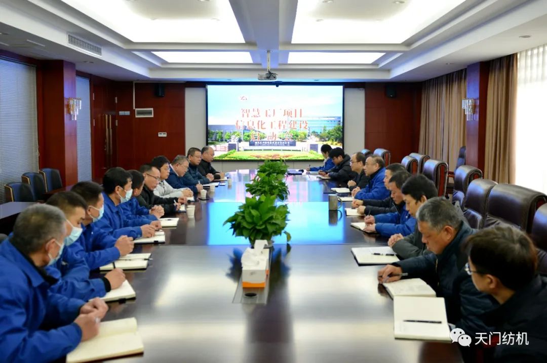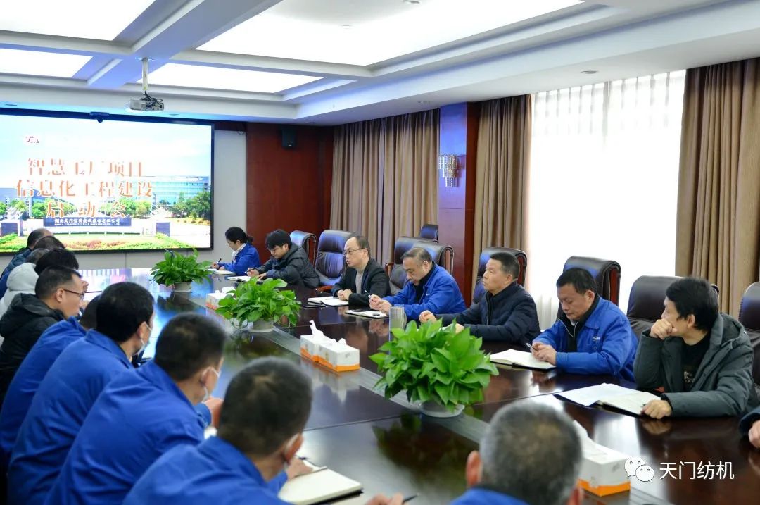 12月6日上午,天門紡機“智慧工廠”項目信息化工程建設啟動會在總經理焦倫進主持下隆重召開。天門紡機董事長沈方勇、武漢銀橋總經理吳慶文及副總經理鄧俊杰出席了會議。