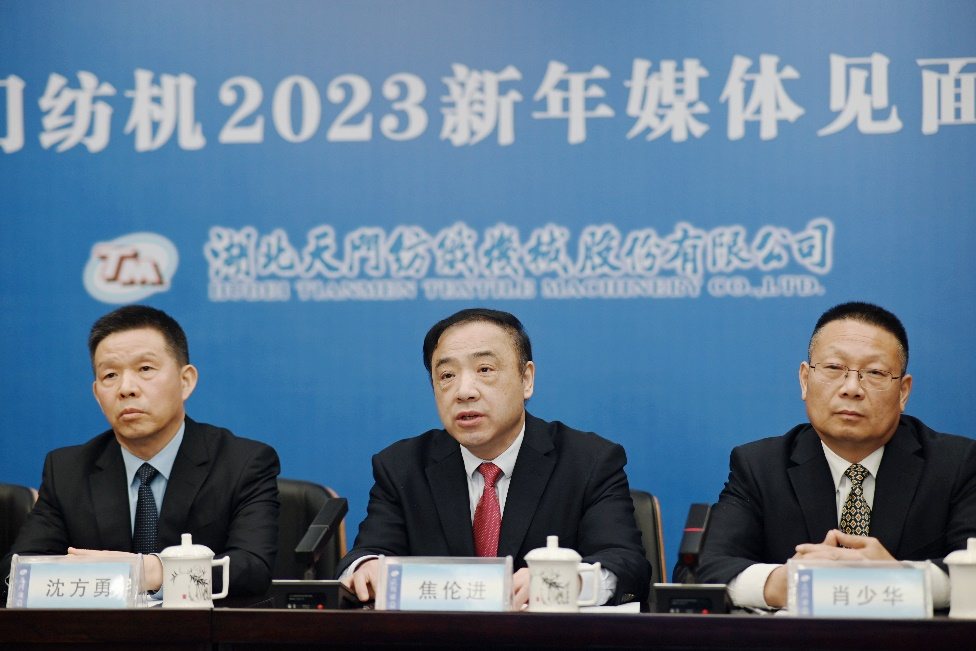 圍繞“疫情三年,天門紡機如何實現(xiàn)逆勢發(fā)展”的話題,湖北日報、紡友網(wǎng)、中國紗線網(wǎng)、紡織機械雜志社、中國紡織雜志社、天門電視臺、天門日報、湖北廣播電視臺、棉紡織技術期刊社、中國紡織報等10家媒體分別提問,天門紡機董事長沈方勇、總經(jīng)理焦倫進、副總經(jīng)理肖少華、楊文峰和品控總監(jiān)樊早斌等一一作出解答。