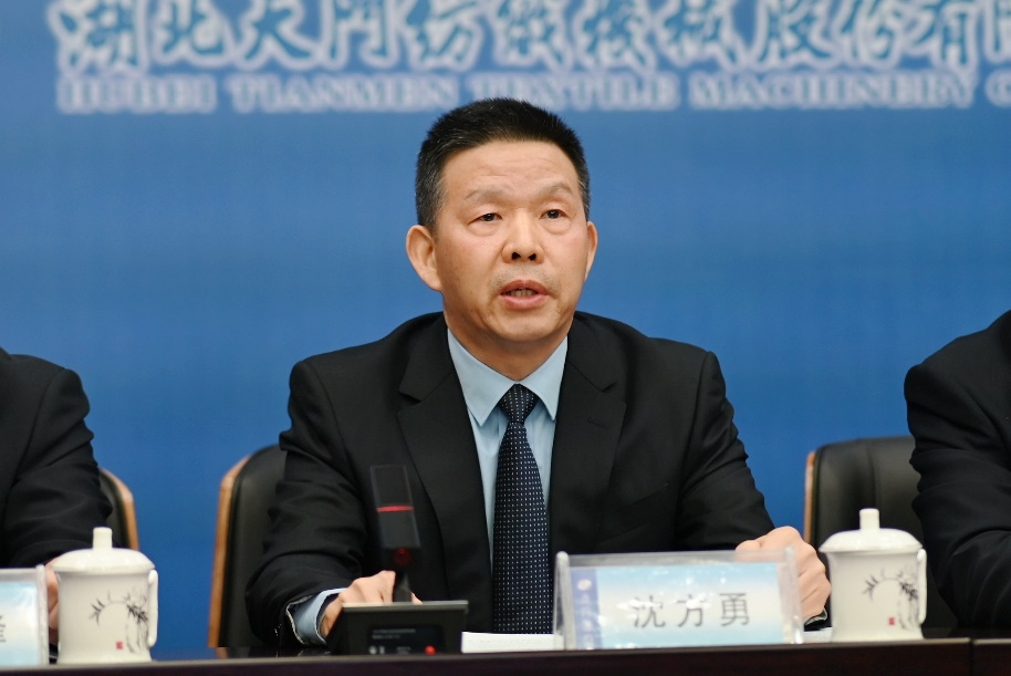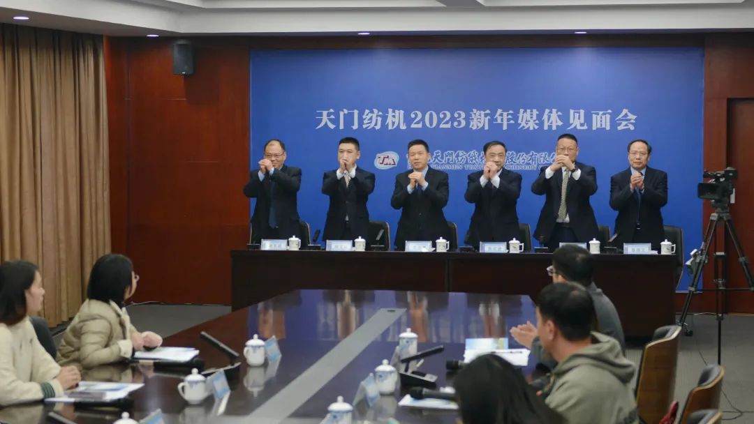 媒體提問結束后,沈方勇董事長率公司同仁向大力支持召開本次媒體見面會的天門市委宣傳部、融媒體中心及蒞臨會議的各媒體朋友表達了感激之情,并提前向長期支持關心天門紡機發(fā)展的各界同仁和廣大用戶拜年。