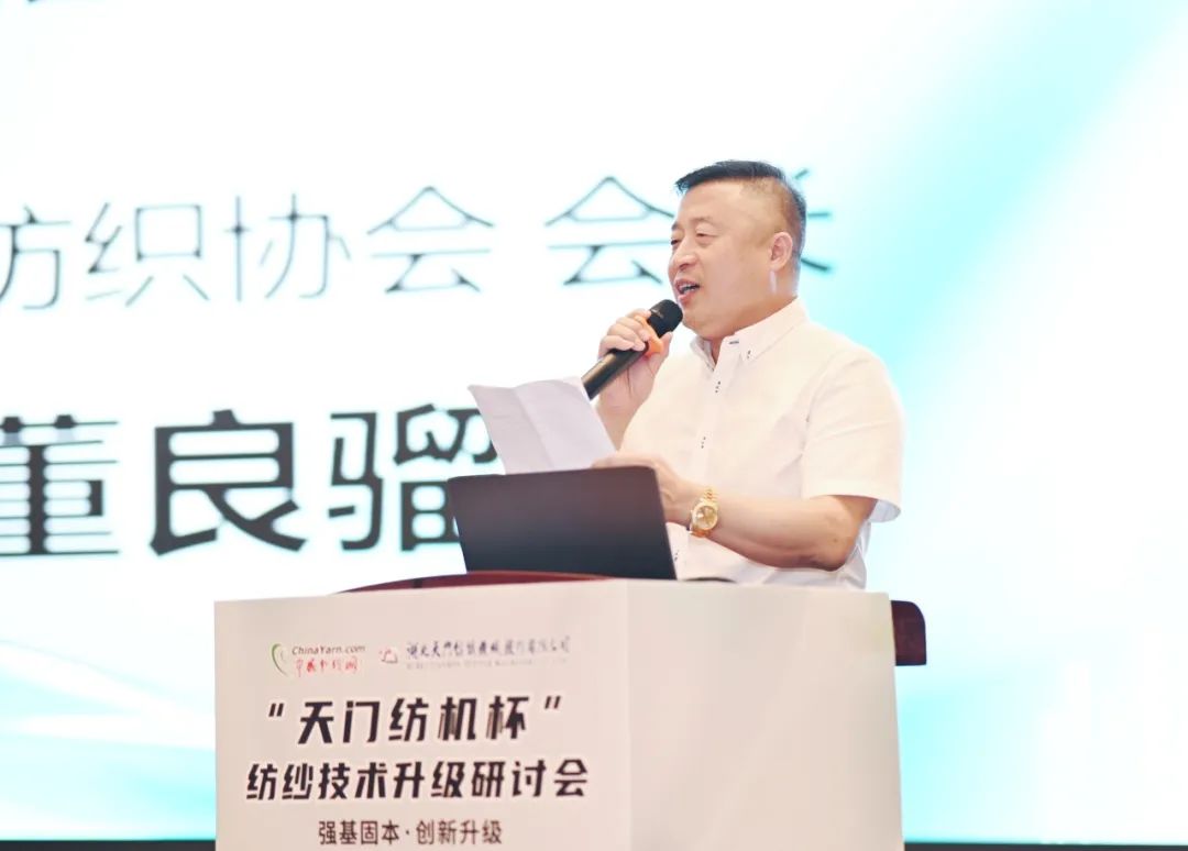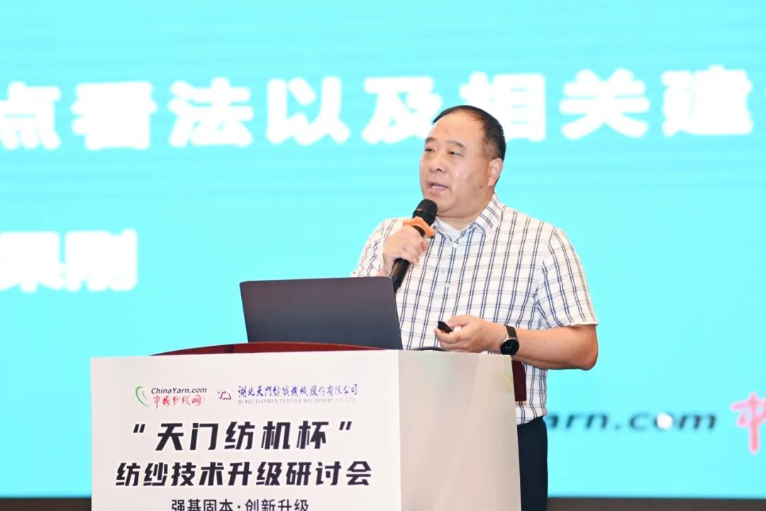 沛縣縣委常委、常務副縣長辛松在致辭中強調,沛縣高度重視紡織產業發展,希望通過舉辦此類高水平、高規格的研討會,推動沛縣紡企技術升級和產業發展;沛縣紡織協會會長董良騮對“天門紡機杯”紡紗技術升級研討會在沛縣召開表示祝賀,他表示,這次活動將為沛縣紡織行業的技術整體提升、產業發展帶來更多的機遇。中國紗線網總編王果剛分析了當前紡織行業面臨的機遇和挑戰,指出了紡企要關注的多項關鍵因素;微山縣泰豐紡織有限公司副廠長董勤楠作了題為《陸S工藝在萊賽爾紗線生產中的應用實踐》的報告,分享了通過優化工藝設計方案為企業提質增效的創新成果及天門紡機T1系列并條機在生產線上的應用經驗。