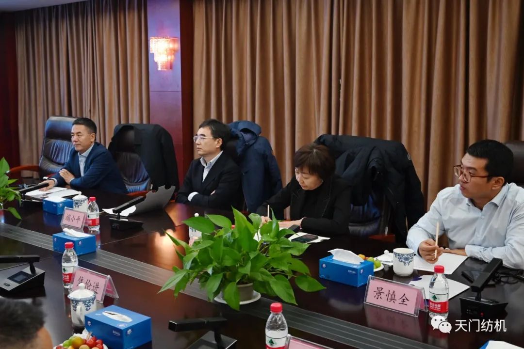 在聽取匯報后,端小平副會長對天門紡機的發展思路及成績給予了充分肯定。他強調,天門紡機的創新理念和生態理念具有時代特色,是企業不斷發展的動力源泉。在行業面臨諸多挑戰的當今,天門紡機作為骨干企業,一定要堅定信心,直面機遇、挑戰,探索全球化布局,推進轉型升級,為行業發展作出更大貢獻。