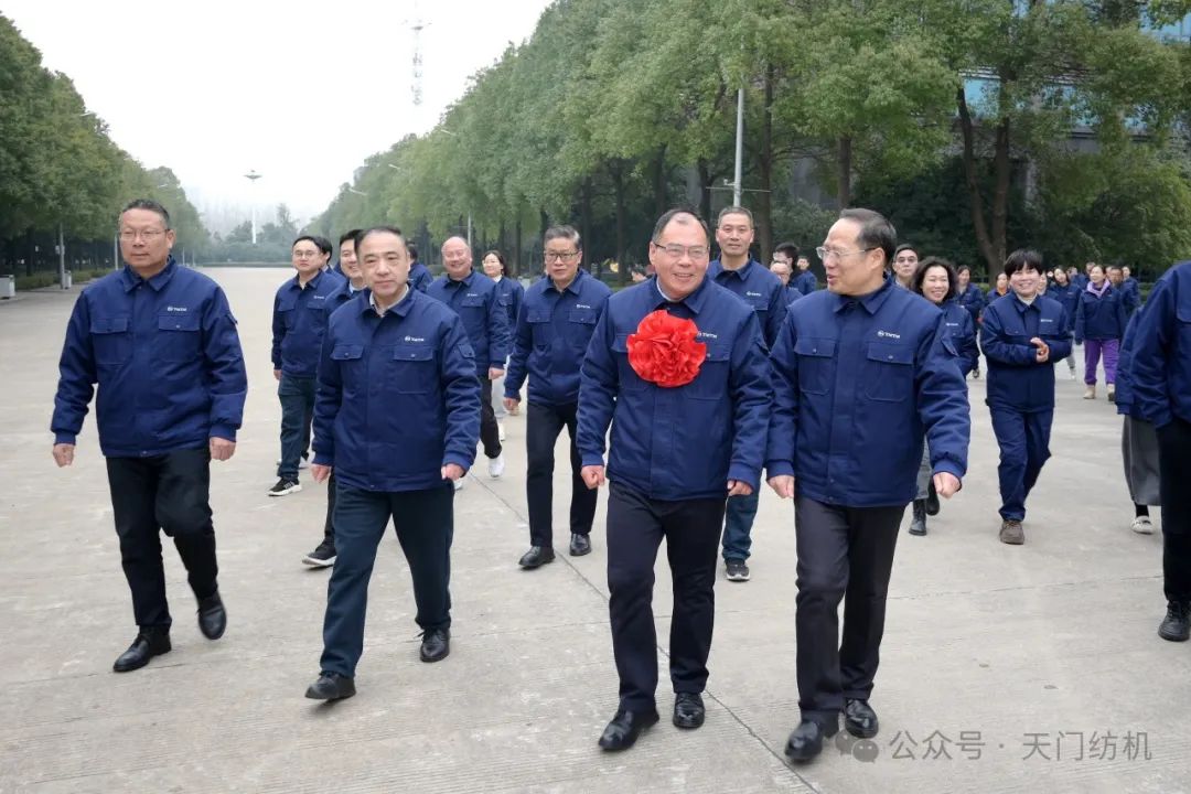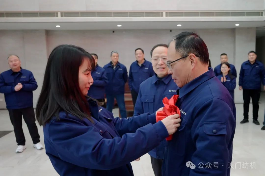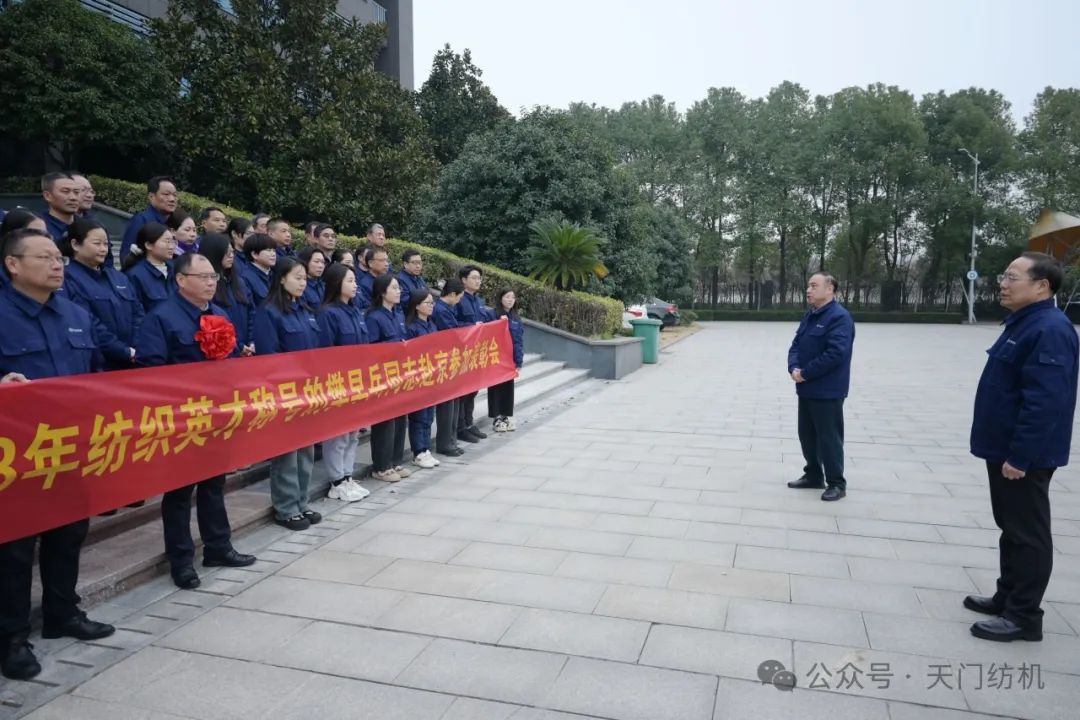 2024年1月15日上午,天門紡機部室員工齊聚科技樓大廳,歡送公司品控總監、高級檢驗師樊早兵同志赴京參加“2023年中國紡織人才大會”。公司總經理焦倫進在歡送活動中即席講話,他說,樊早兵同志被授予“2023年度新時代紡織英才”,是中紡聯對他取得的顯著成績及奉獻精神的充分肯定,實至名歸。他得到如此殊榮是天門紡機的驕傲,全體員工要以他為榜樣,努力工作,奮發有為,為公司高質量發展貢獻應有的力量。送行的員工敲鑼打鼓,載歌載舞,把現場氣氛推向高潮。