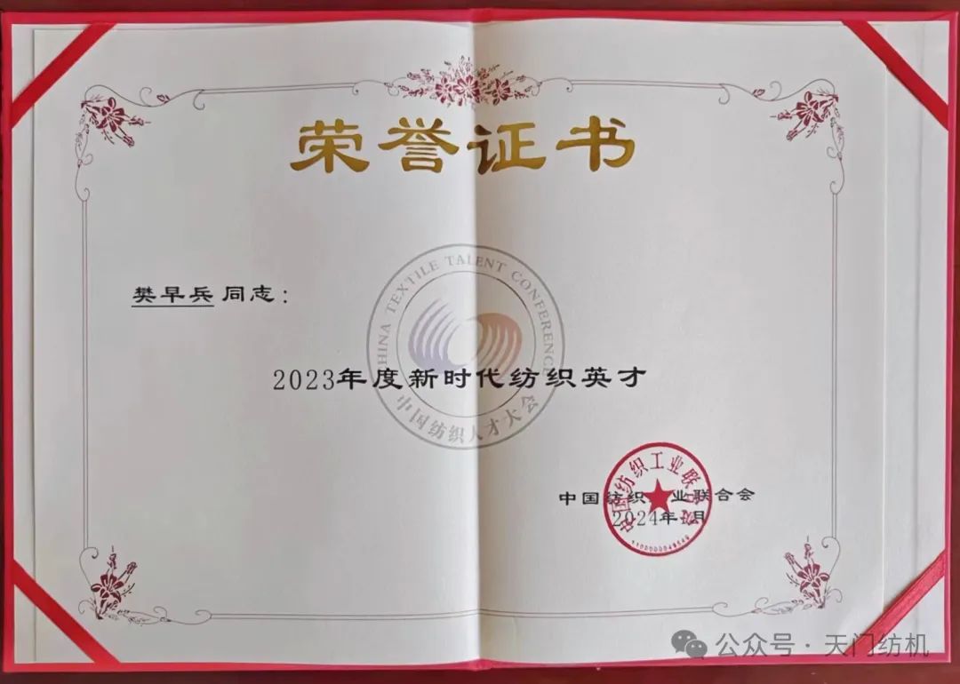 紅梅吐新蕊 鵲語報佳音——天門紡機樊早兵同志榮獲“2023新時代紡織英才”稱號