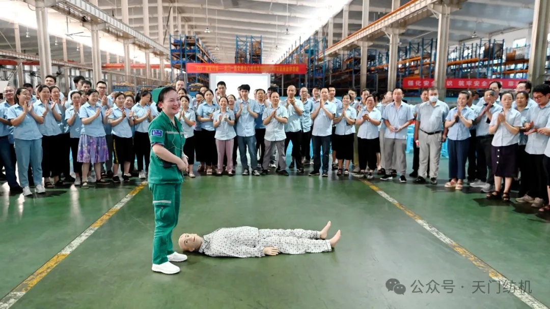 室外赤日炎炎,酷暑難當;室內座無虛席,氣氛熱烈。2024年7月17日下午,天門紡機在生產現場組織了一場別開生面的健康知識及急救技能培訓活動,天門市第一人民醫院的多位醫療專家應邀來公司進行健康知識講座和急救實操演示。