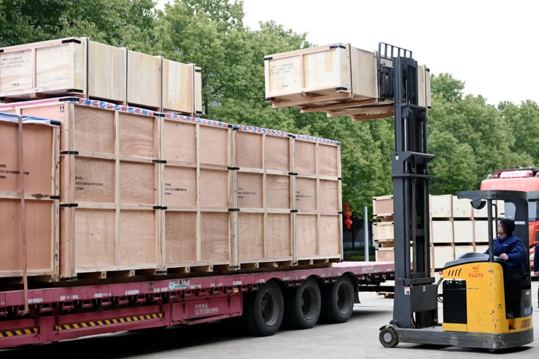 2025年2月5日,大年初八,春寒料峭。當(dāng)濃厚的年味還在江漢平原持續(xù)蔓延的時候,湖北天門紡織機(jī)械股份有限公司已經(jīng)切換到“開掛”模式,生產(chǎn)車間一片忙碌景象,13臺并條機(jī)產(chǎn)品披紅掛彩,即將起運(yùn)到客戶手中。