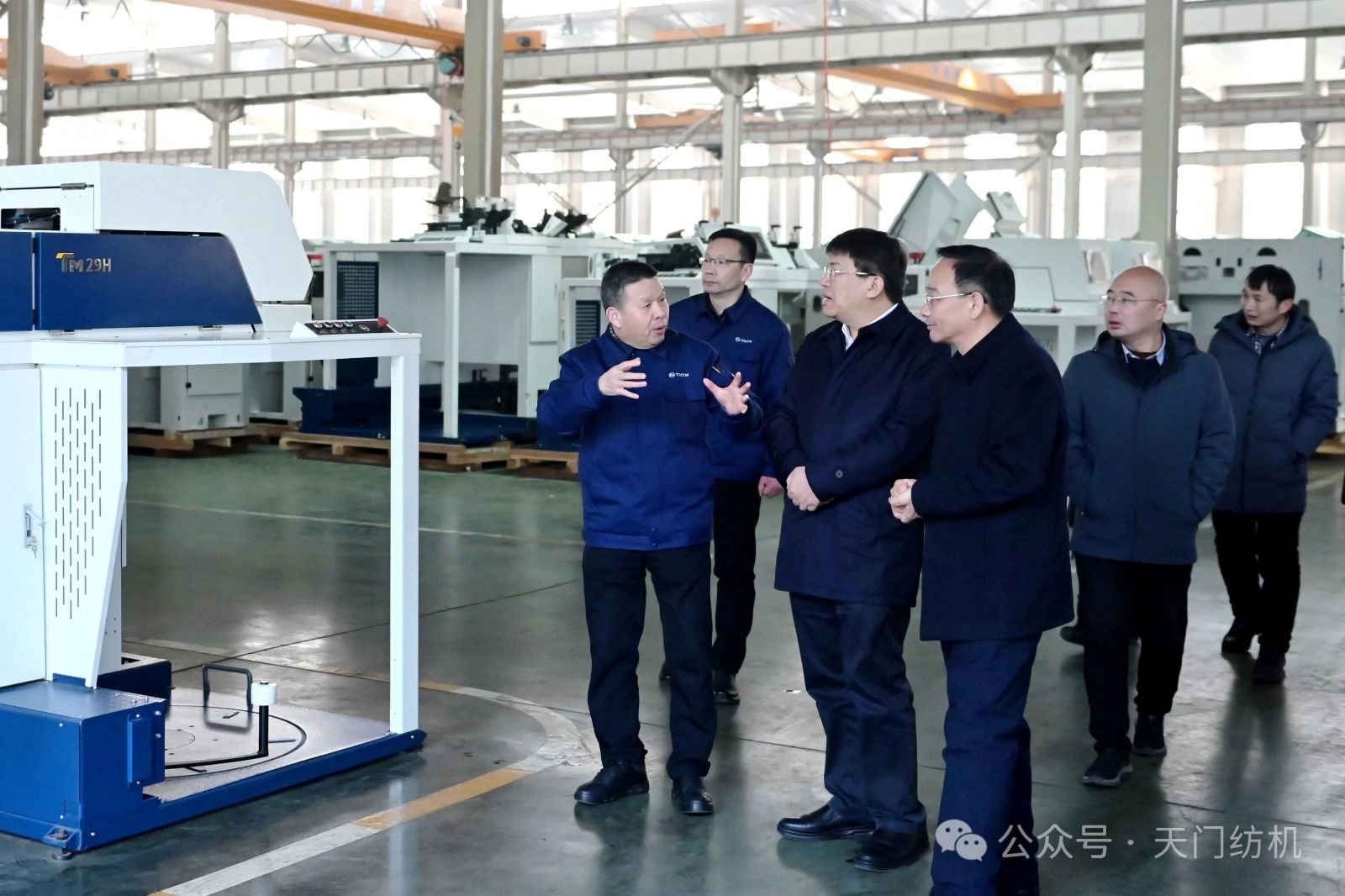 1月23日,湖北省總工會黨組成員、副主席馮家欣,省職工科技文化中心主任顧丹莉,省總工會經技部副部長余成剛等領導,在天門市人大常委會黨組成員、副主任陶家文,市總工會黨組書記、常務副主席江文等領導的陪同下蒞臨天門紡機,開展2026年春節送溫暖走訪慰問活動,為我公司車間班組一線職工及困難職工,送上工會組織的“暖心大禮包”。公司董事長沈方勇、工會主席丁亮等公司領導熱情接待慰問組一行并參與慰問活動。